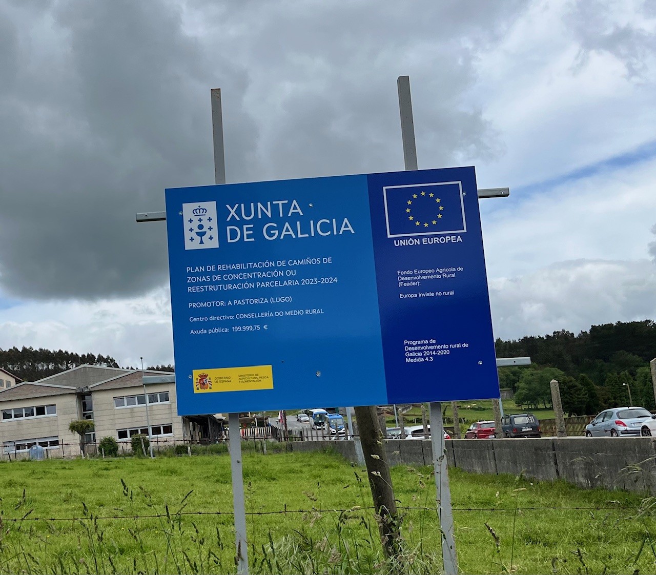 Cartel obra Rehabilitación de camiños de zonas de concentración ou reestruturación parcelaria 2023-2024